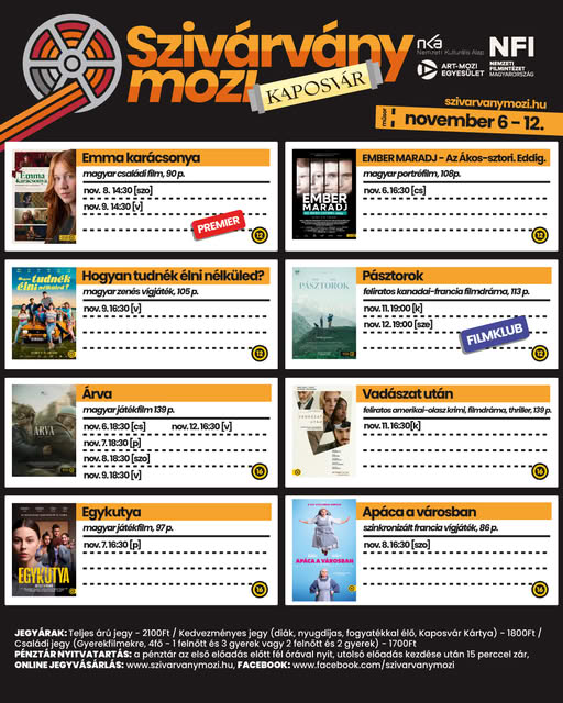 Nyitva tartás 2025. 11.03-tól: kedden-szerdán 10:00-16:00, szombaton 14 órától