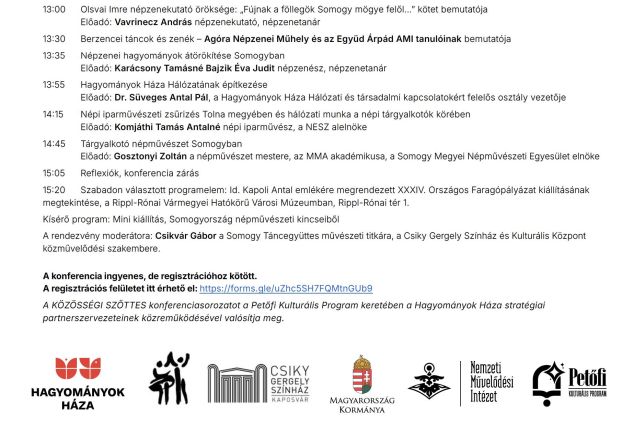 Tel.: +36 82 505 180). Ugyanitt lehetséges a programokra való regisztráció is.