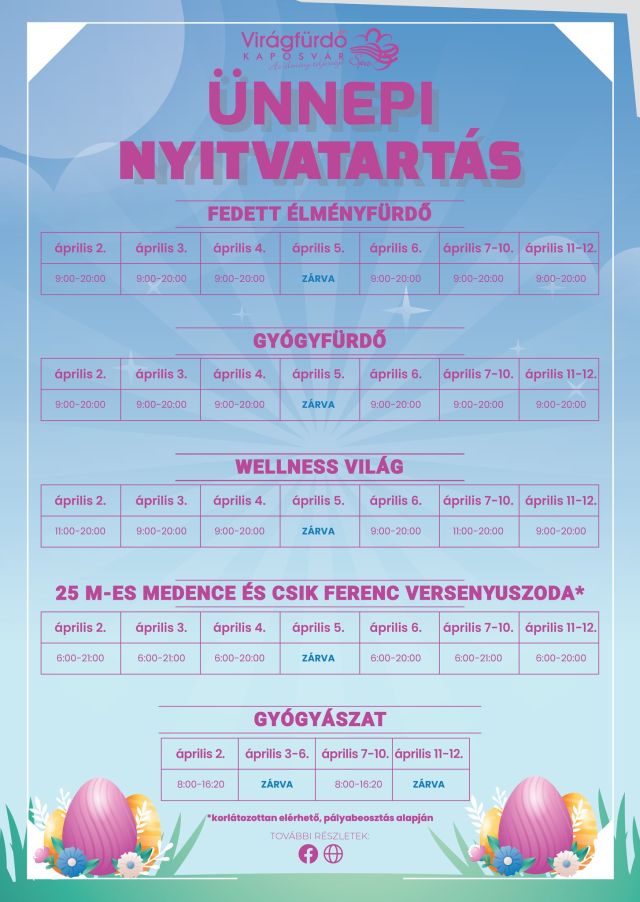 április 5. vasárnap: 11:00 - 18:00