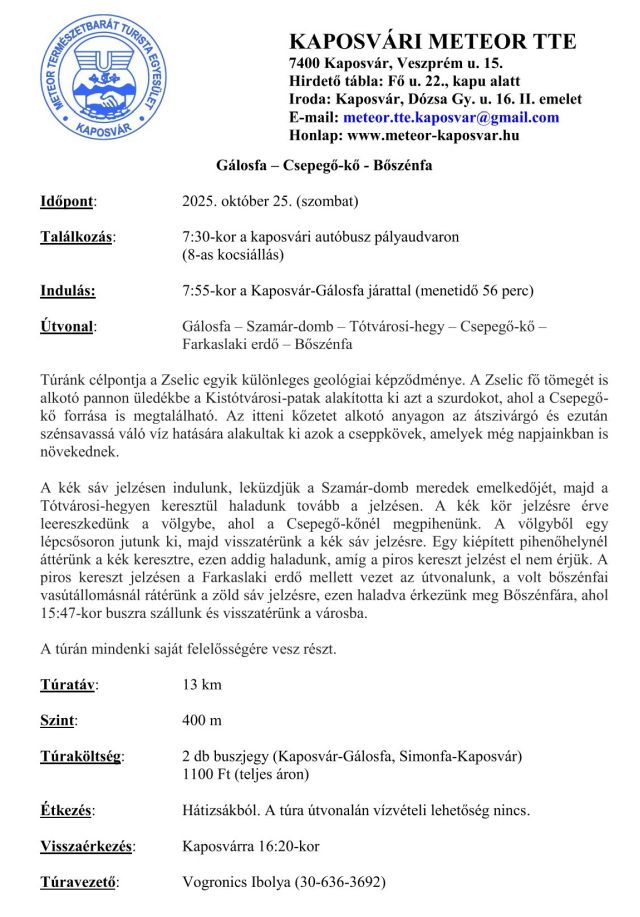 2025. november 8-án kerül megrendezésre az eredetileg 10.25-i napra tervezett túra.