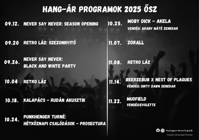 Részletek és további programokhttps://www.facebook.com/hangarmusicpub és