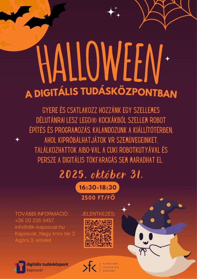 2025.10.30., csüt.: 13:15 – 13:45: Töklámpás készítése, 16:30 – 17:00: Szellemes TÖKölődés