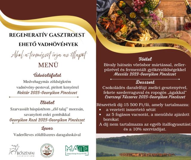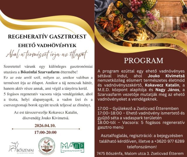 Részvételi díj: 1500 Ft/fő. Előzetes jegyfoglalás lehetséges.