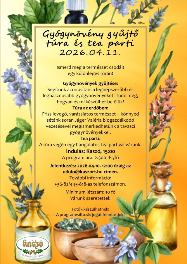 Részvételi díj: 1500 Ft/fő. Előzetes jegyfoglalás lehetséges.